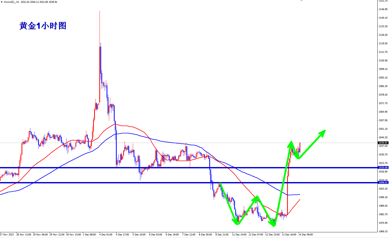 黄金1小时均线开始拐头,而且大有可能进入金叉向上发散的可能性很大,黄金大阳反转之后,量能充足,早盘我们就直接说了,黄金早盘窄幅震荡就是蓄势,午后最低也只是探底到了2029附近,今天2029上方获得支撑都是给我们干多的机会,现在回落2030附近可以继续多。