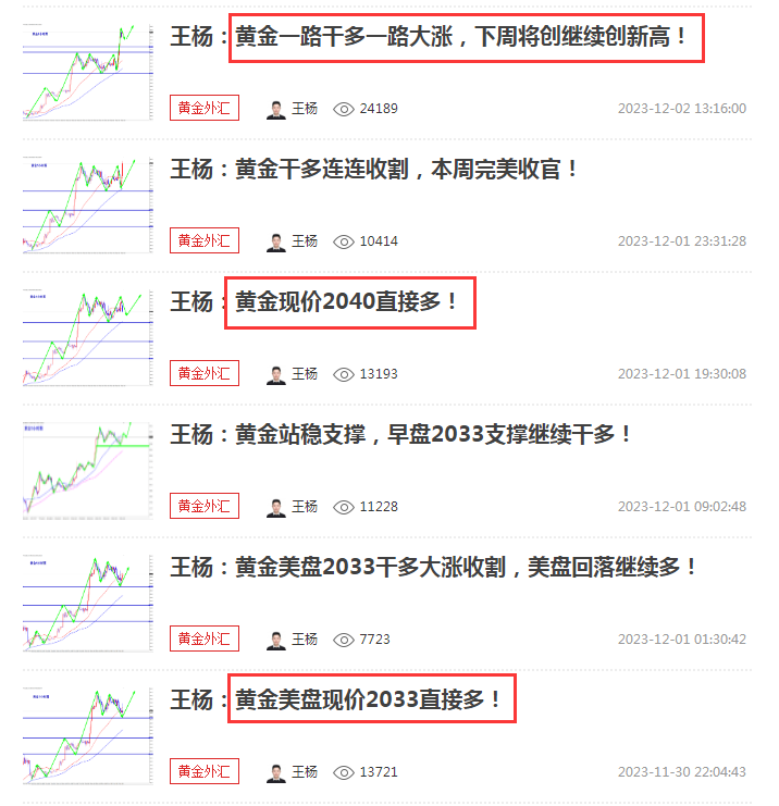 黄金昨日大涨突破新高,顺势轻飘飘,逆势乱糟糟!相信大家再一次见识到了趋势的力量!跟上市场的节奏,本周干多两连胜!当前涨势继续,回踩继续干多,依托2033的支撑多! 趋势为王,点位致胜!我们一直都是趋势交易者!每一波行情,都是从头跟到尾!当前黄金涨势继续,依托支撑位置还是继续干多看涨不变!