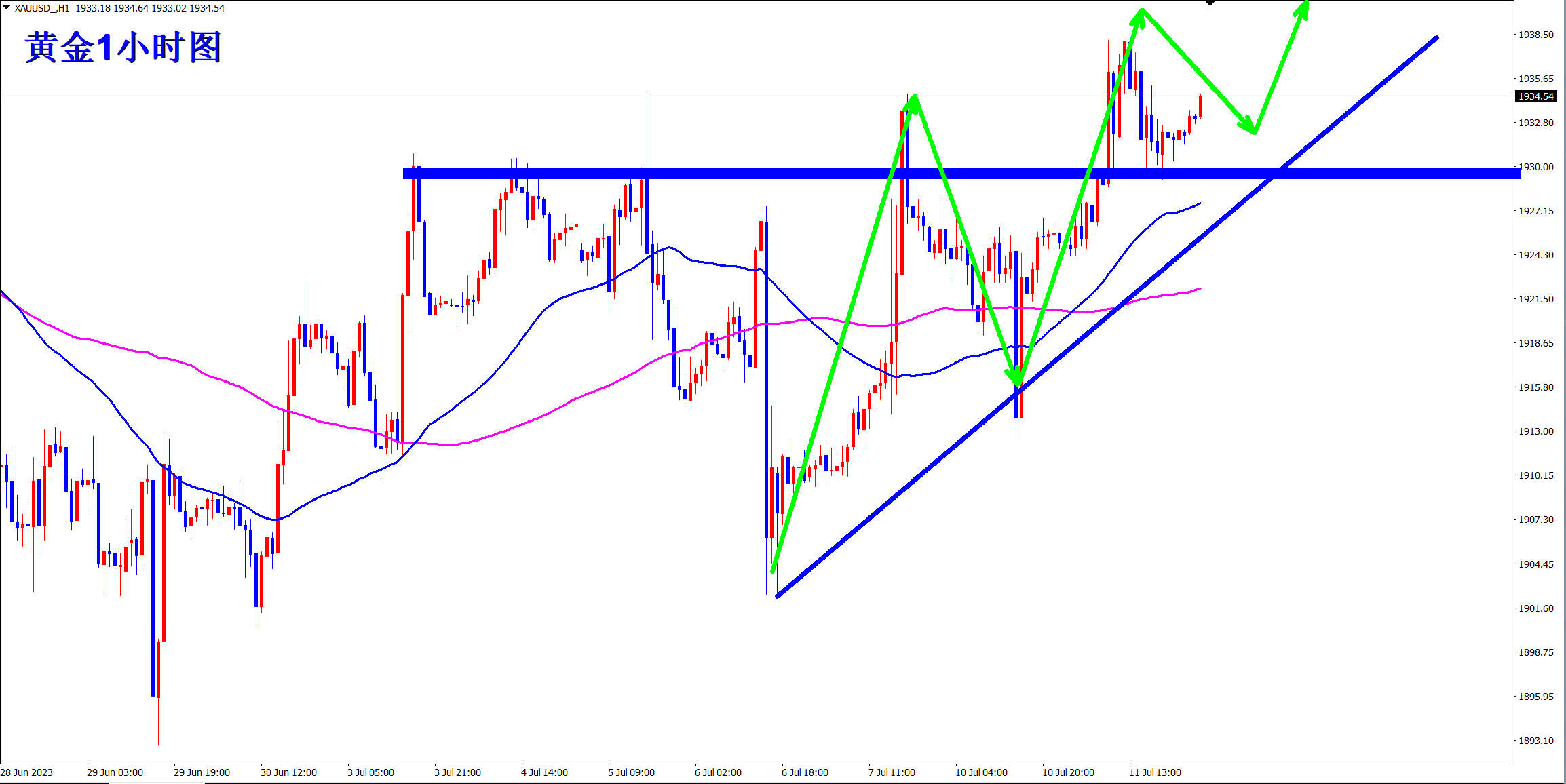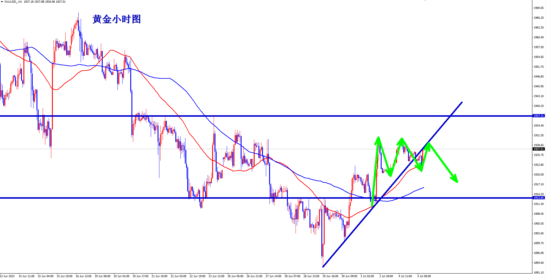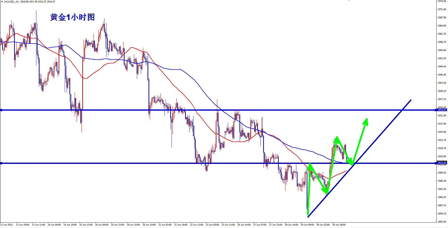 黄金午后现价1914直接多! 黄金周五深V反转之后,周初一般行情都是震荡为主,黄金1小时上升趋势线短线支撑黄金上涨延续反弹,上方阻力在前期高点1930附近。周末和早盘文章也都提示了,今天操作在1910-1930之间高抛低吸,黄金今天一直维持在1910上方运行,短线形成支撑,午后1914现价直接干多了! 行情瞬息万变