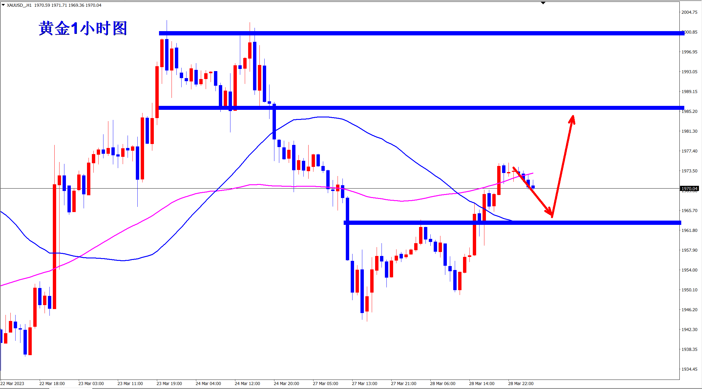 黄金昨日先跌后涨,美盘震荡突破1965压力,王杨第一时间反手干多!不破不立,破位反转,方向不对,停止就是前进,转身就是利润!当前黄金继续上涨,早盘1960底部盘整支撑上做多! 震荡行情,行情来回反复!操作上要根据实际的走势及时调整思路!当前行情开始反弹,操作上就要及时的跟进!做多!昨日的盘整压力,突