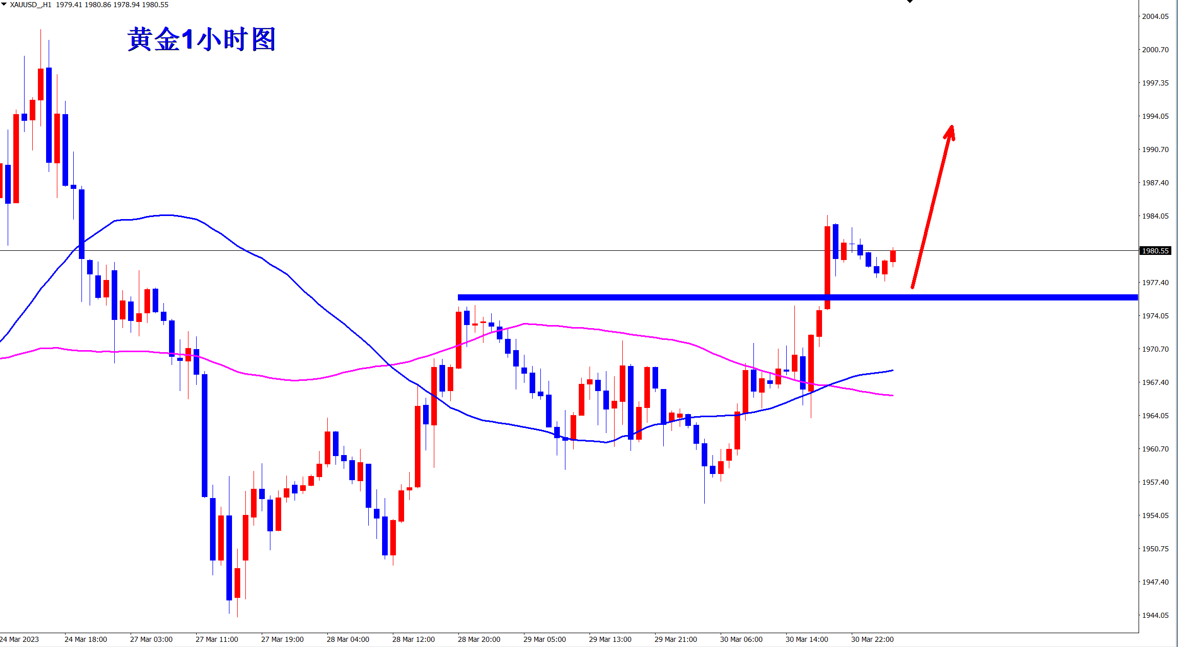黄金昨日上涨突破1975压力,突破后多空转换,行情转多,早盘依托1975的支撑开始低多看涨! 黄金大方向还是上涨趋势,而且昨日子啊此突破底部小盘整压力位置,当前行情重启涨势!顺势而为,早盘直接多!上方的压力分别是1990和2000关口位置!多,直接多! 强势的上涨行情,顺势而为!方向对了不怕路远!思路确