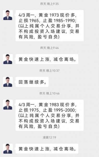 黄金昨日先跌后涨,王杨也是及时调整思路,美盘分别1973多,1983多,如期大涨获利!事实胜于雄辩!跟上就是利润!越是极端的行情,越是显示出王杨的实力! 黄金今日顺势继续做多,依托1975的支撑做多看涨!从走势上看,黄金现在属于顶部三角形整理!多头上涨趋势,现在即将突破三角形上方压力,一旦突破,就是