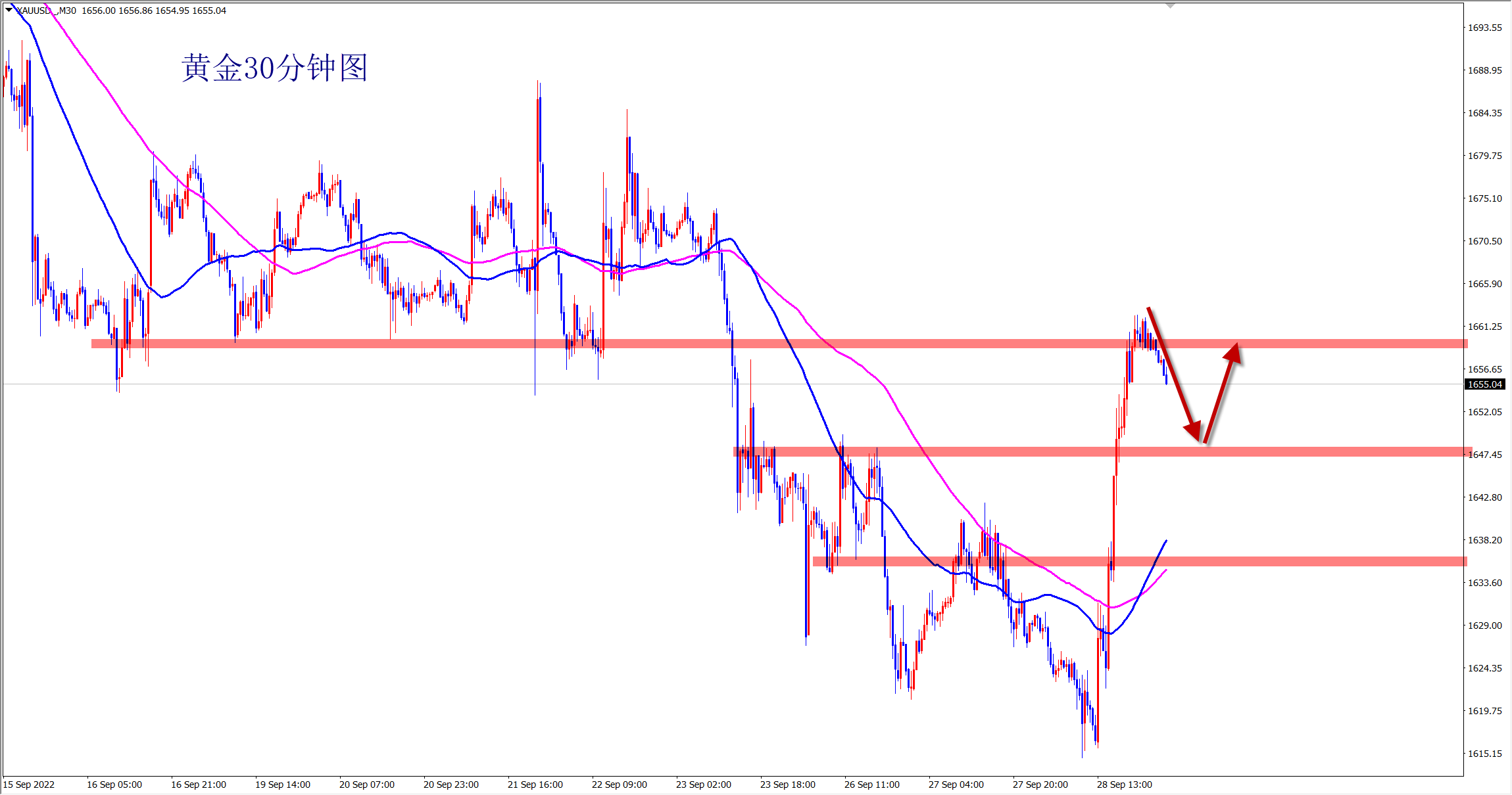 黄金昨日大跌,大跌后需要震荡调整,昨日美盘1665抄底多上涨获利,所以今日早盘,先多看反弹,遇阻压力后再空! 黄金大方向上属于底部宽幅震荡的走势,直接出现单边趋势的概率不大,所以大涨或大跌后都会有相应的调整,昨日大跌,所以今日先看调整! 交易就是把握行情转折,顺势而为,踩准节奏才能事半功