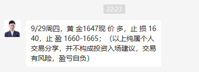 黄金昨日大涨突破压力,直接反弹大涨超50美金!非常强势,但是大涨后行情也需要震荡调整,所以早盘不追多,等待回落后接多,1645支撑干多! 趋势交易,顺势而为!当前黄金下跌趋势被改变,操作思路也要及时调整,其实昨日王杨已经提示黄金波段见底,开始看涨! 今日早盘黄金回落依托1645的支撑开始干多,上方