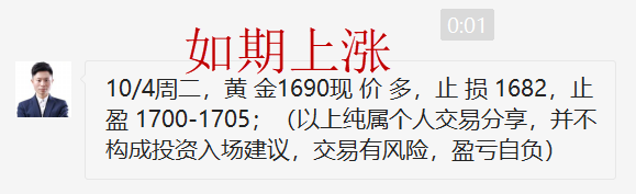 黄金强势上涨,王杨及时调整思路,1690顺势跟进,如期上涨收割!当前黄金开启涨势,早盘回落后继续干多,1690支撑干多! 黄金经过长时间的大跌后开启反弹,而且反弹非常强势,直线式拉升!势不变则守,势变则随!当前黄金开启上涨,操作上就要及时的调整思路继续干多!早盘依托1690的支撑位置继续回落干多!