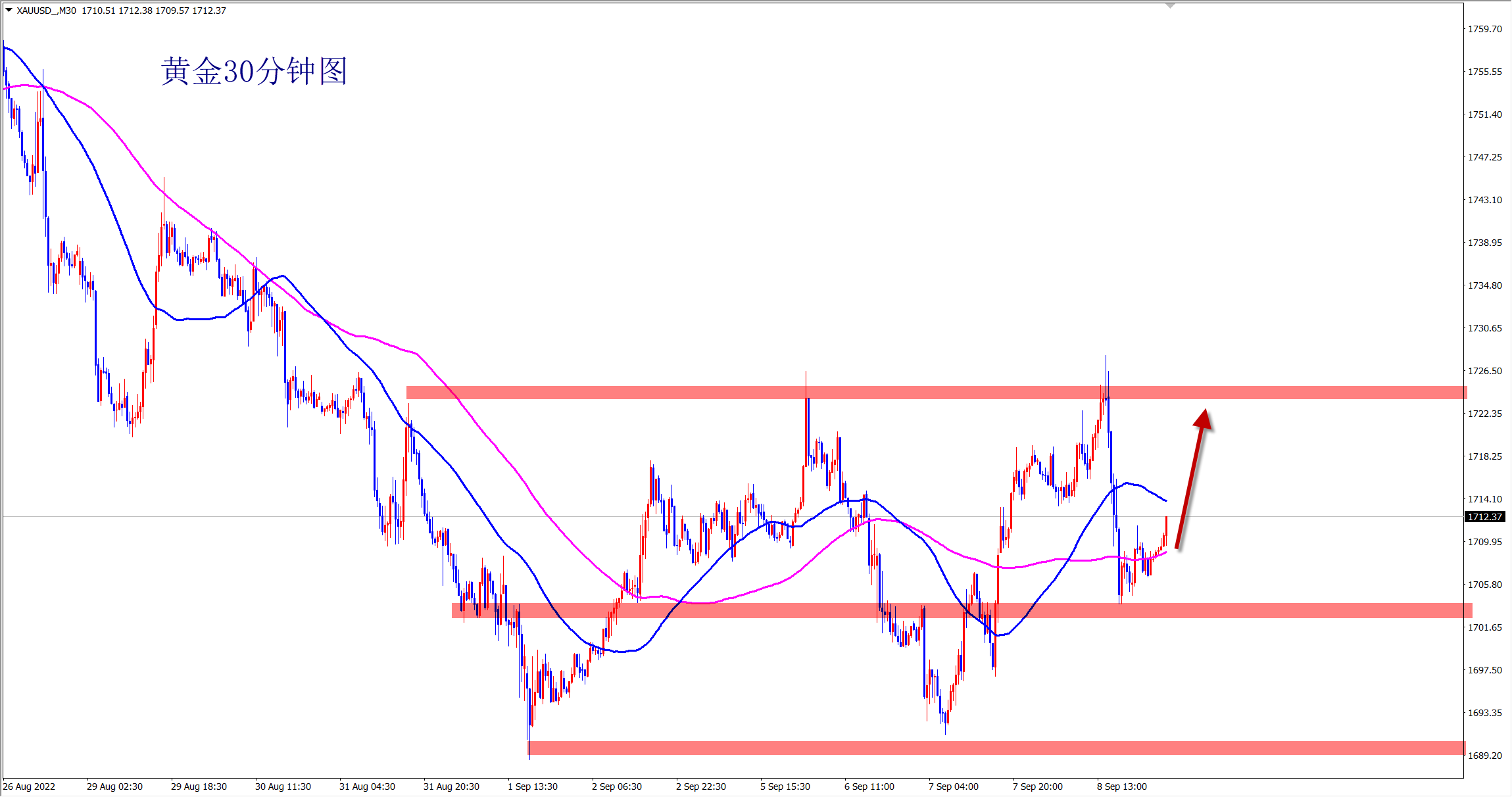 黄金当前底部区间震荡,暂时维持1690-1726区间内反复!但是低多更合适,早盘依托1703的支撑继续干多看涨!静待拉升突破! 黄金底部双底,明显的下跌结束后的反弹走势!而且两次回踩都没有继续新低!而且1680附近又是前期的底部支撑!本身是弱势下跌趋势,但弱不再弱必转强!现在就是要继续干多! 早盘以前低支