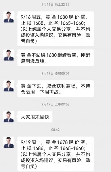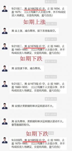 黄金昨日数据前震荡,王杨分别给了1662的多单如期上涨,然后1676反手空,直接下跌收割!王杨已经多次强调,数据前行情区间震荡为主!凌晨美联储利率决议,黄金先跌后涨再跌!反弹压力位置后,王杨果断在1685位置干空,直接下跌获利收割!日内三连胜!给力! 黄金当前还是震荡,但偏空走势!操作上依旧是高空看