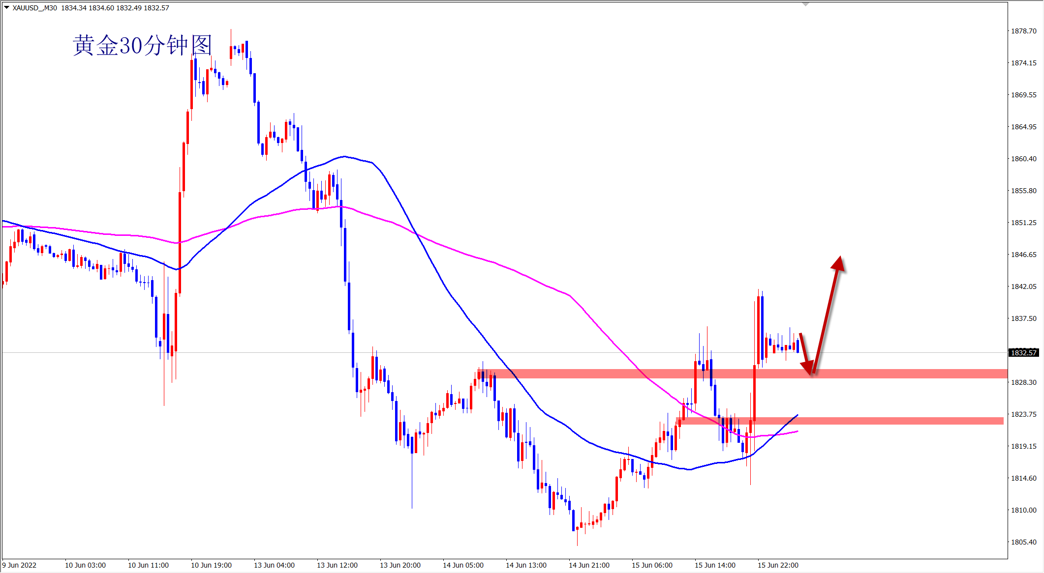 黄金在凌晨利率决议后,强势拉升上涨,日线大阳竖起!多头强势!今日依托1826的支撑低多看涨! 黄金数据前行情大涨大跌,多空来回折腾,没有明显的方向!买预期,卖事实,昨日在加息利空下,黄金不跌反涨,弱不再弱必转强!而且昨日黄金强势上涨,形成V型反转走势,日线实体大阳线,形成底部形态! 早盘黄金依
