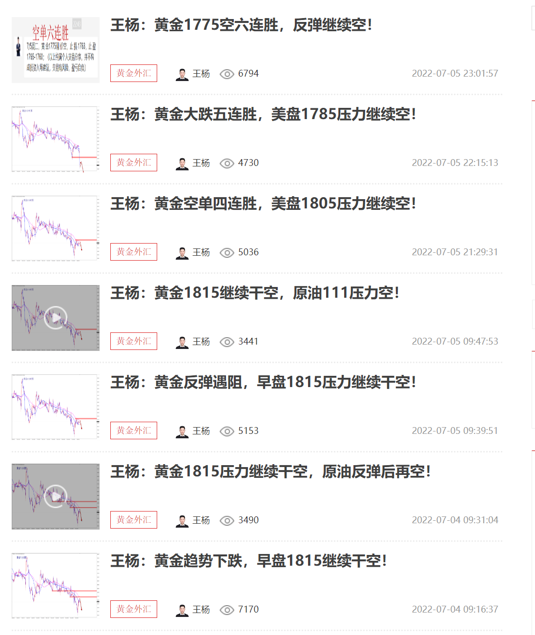 王杨:资深黄金分析师,多年黄金分析及实盘操作经验,曾独掌千万,纵横于市场;对国际基本面、技术盘面解读有独特的思维理念和操作模式,曾对市场巨鳄的思路做过深度的研究;金融市场瞬息万变、灵活变动、运筹帷幄、防微杜渐、如履薄冰以一颗谦卑的心去纵横市场方可百战不殆。