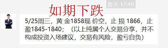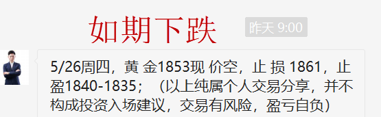黄金昨日早盘开始阴跌不止,破位1860后我们就是的反手1858干空,下跌获利收割,方向不对,停止就是前进,转身就是利润,今日黄金1856附近继续干空! 黄金当前上涨阶段见顶,操作上开始以高空为主了!此前黄金强势上涨,我们已经拿下大波的利润,行情转跌后,操作上也当以高空为主,反弹就是干空机会! 势