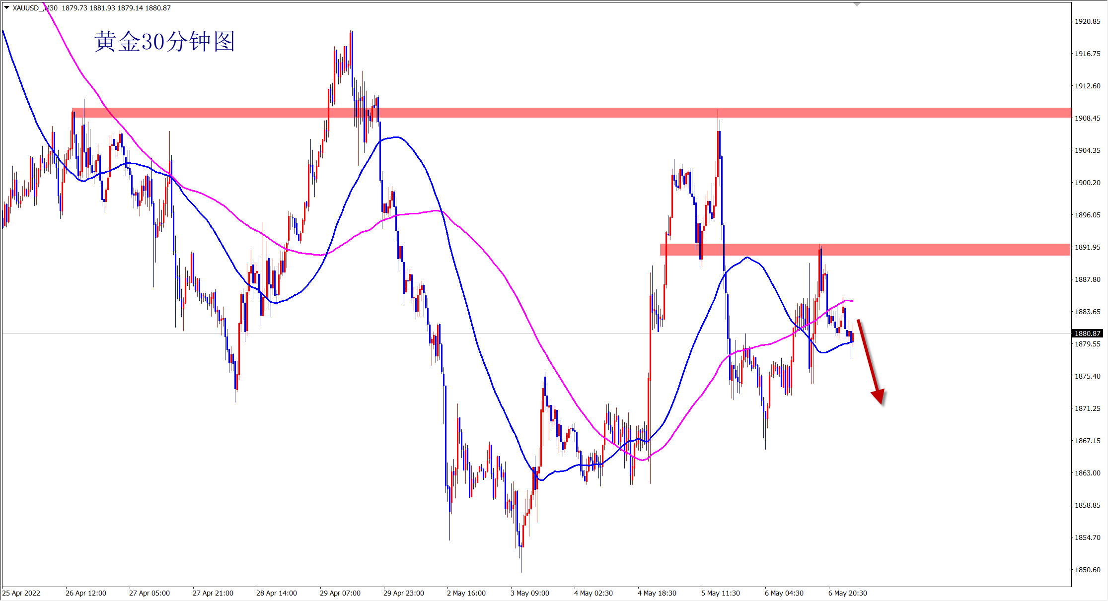 黄金反弹再次遇阻1890压力,上涨无力,还是空头走势,早盘依托1890的压力继续看跌! 黄金当前虽然下跌获得1850的支撑,利率决议和大非农后行情都进行了强势的反弹,但似强实弱,最关键的压力位置都未能突破,依旧是空头下跌走势!反弹不过是对此前大跌后的行情走势修复,但根本的核心方向没有改变! 当前黄金