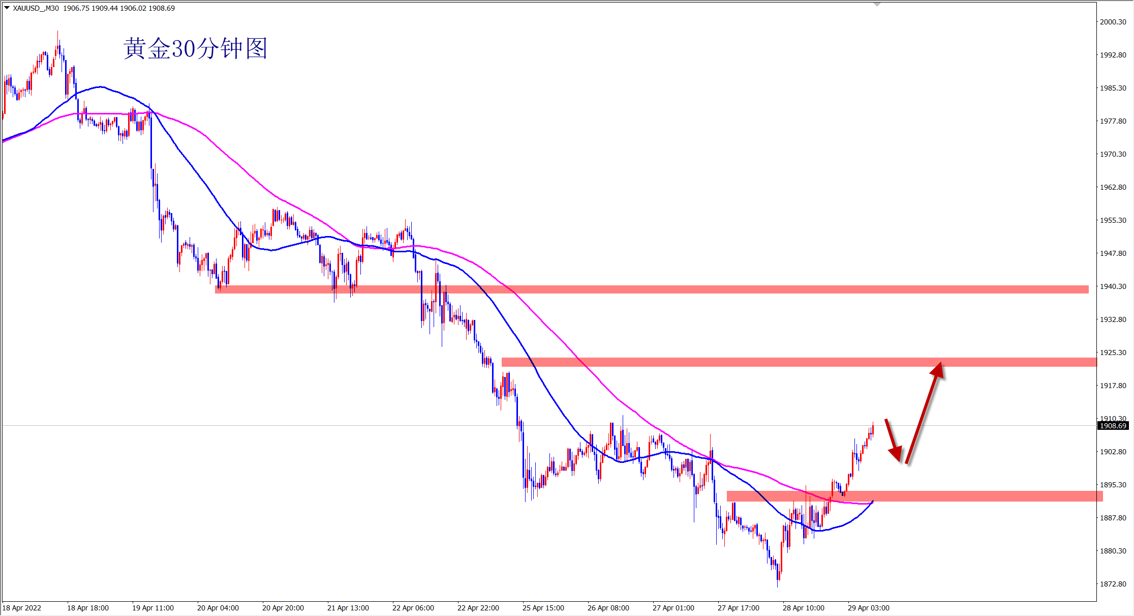 黄金今日单边上涨,我们早盘1900的多单如期上涨获利,当前行情涨势不变,并且突破了1910的压力,直达1920目标区域!强势上涨节奏,美盘继续顺势干多,1910上回落直接多! 再次提醒大家,如果行情发生变化了,我们的思路就要跟着转变,交易策略也要跟着调整。不能用僵化的思维看待市场,要用发展的眼光、辩证的思维