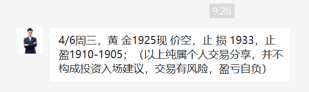 黄金昨日破位下跌,我们早盘1925直接干空,如期下跌获利!当前黄金还是跌势不变,欧盘继续干空,1925下空! 交易没有死多头,也没有死空头,只有顺应市场的滑头,风往那边吹,我们就要往那边倒,只有跟上市场的节奏才能立于不败之地!昨日我们干多两连胜,今日行情转空,干空再下一城,多空完美切换! 跌