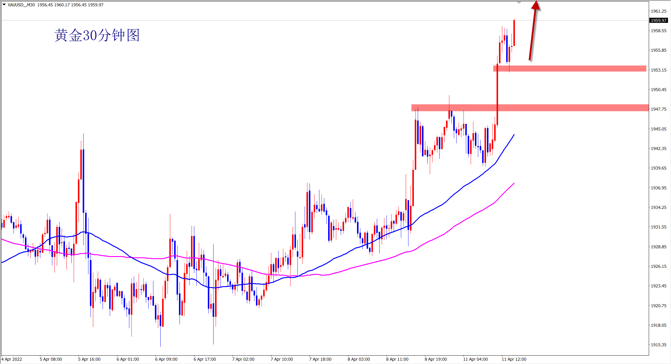 黄金当前开启反弹上涨走势,而且站稳在1940支撑上方,上涨继续,早盘依托1940的支撑干多! 黄金此前两周维持1940下盘整震荡,两次下跌1890附近后都快速拉起,经过长时间的调整后选择向上突破,方向已经明确,震荡越久,爆发越强,当前刚刚突破,上涨才开始,干多仍是主要思路! 周五突破后回踩1940支撑,并站