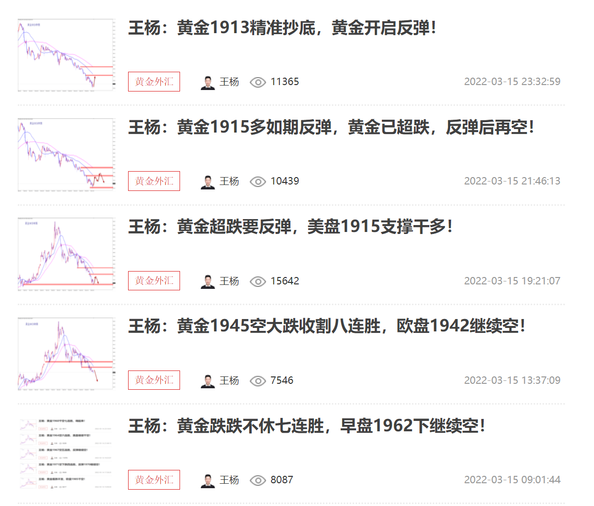 王杨:资深黄金分析师,多年黄金分析及实盘操作经验,曾独掌千万,纵横于市场;对国际基本面、技术盘面解读有独特的思维理念和操作模式,曾对市场巨鳄的思路做过深度的研究;金融市场瞬息万变、灵活变动、运筹帷幄、防微杜渐、如履薄冰以一颗谦卑的心去纵横市场方可百战不殆。
