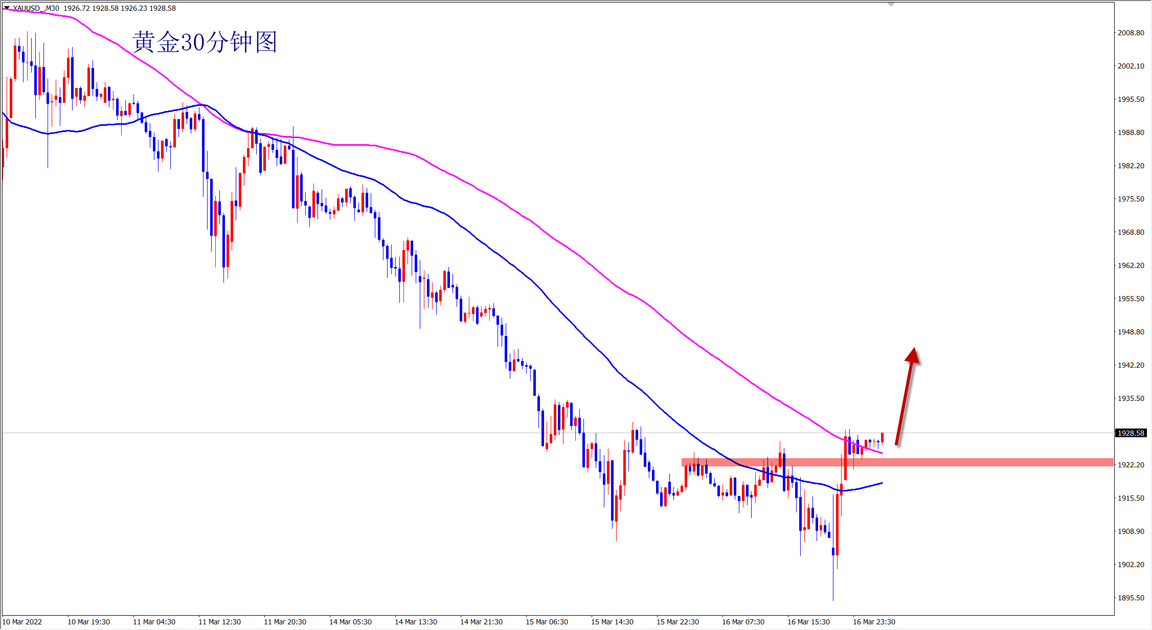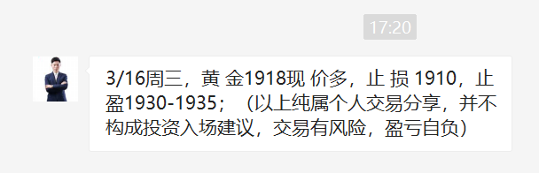 黄金今日就是筑底反弹走势,我们昨日美盘已经提示,今日1913多和1918多全部大涨获胜,日内两连胜到手!美盘还是继续看涨不变!上方关注1940压力! 黄金昨日探底回升,今日横盘震荡,已经改变此前单边下跌的节奏,说明行情方向开始改变,王杨已经提示了无数次,只有紧跟市场节奏,才能立于不败之地,趋势交易,顺