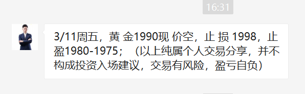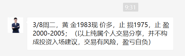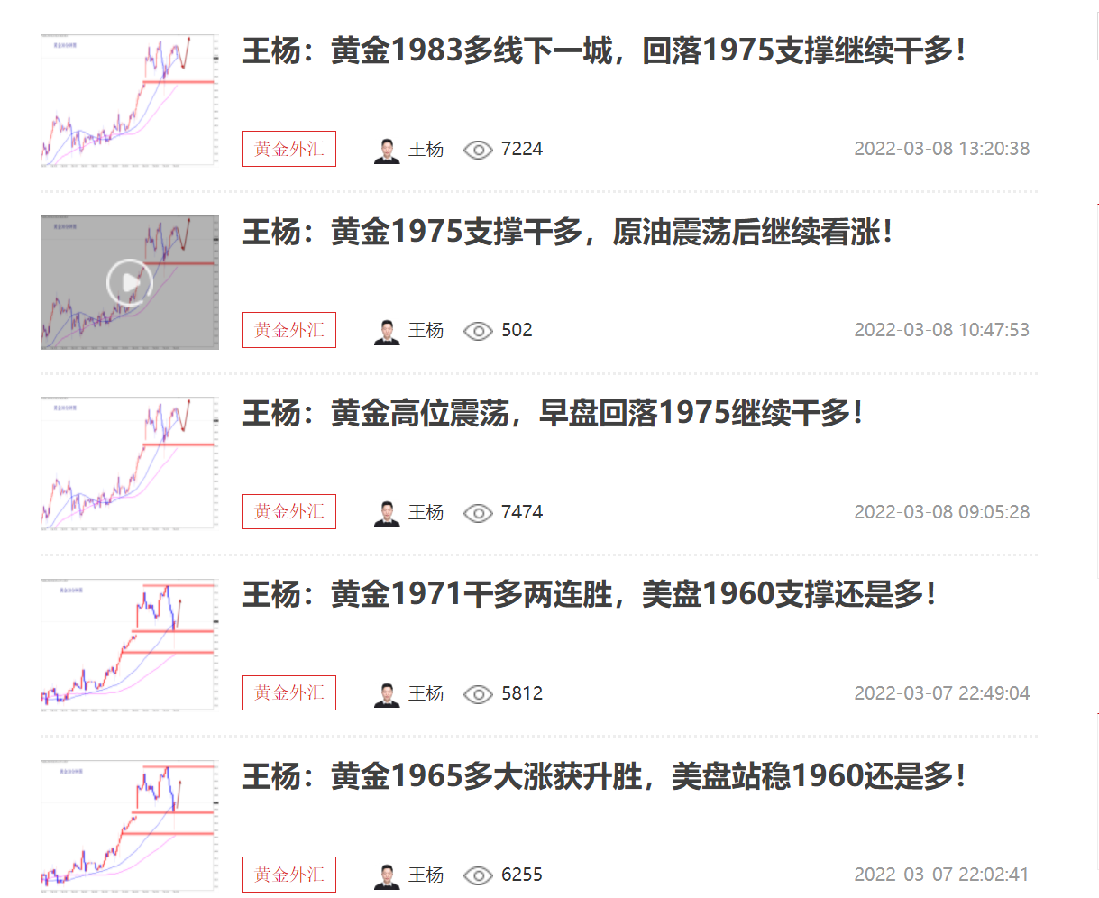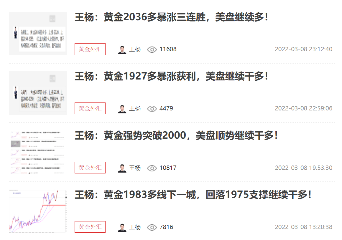 黄金做回调,王杨强调还是多头不变,直接给到1965的多和1971的多,今日黄金早盘再次回调,王杨再次提示多头不变,并给了1983的多,最终的结果就是黄金爱再次大涨突破新高!顺势轻飘飘,逆势乱糟糟,顺势而为,轻松获利! 黄金当前已经突破2000关口,并且维持此位置上方运行,多头非常强势!王杨已经无数次的提示