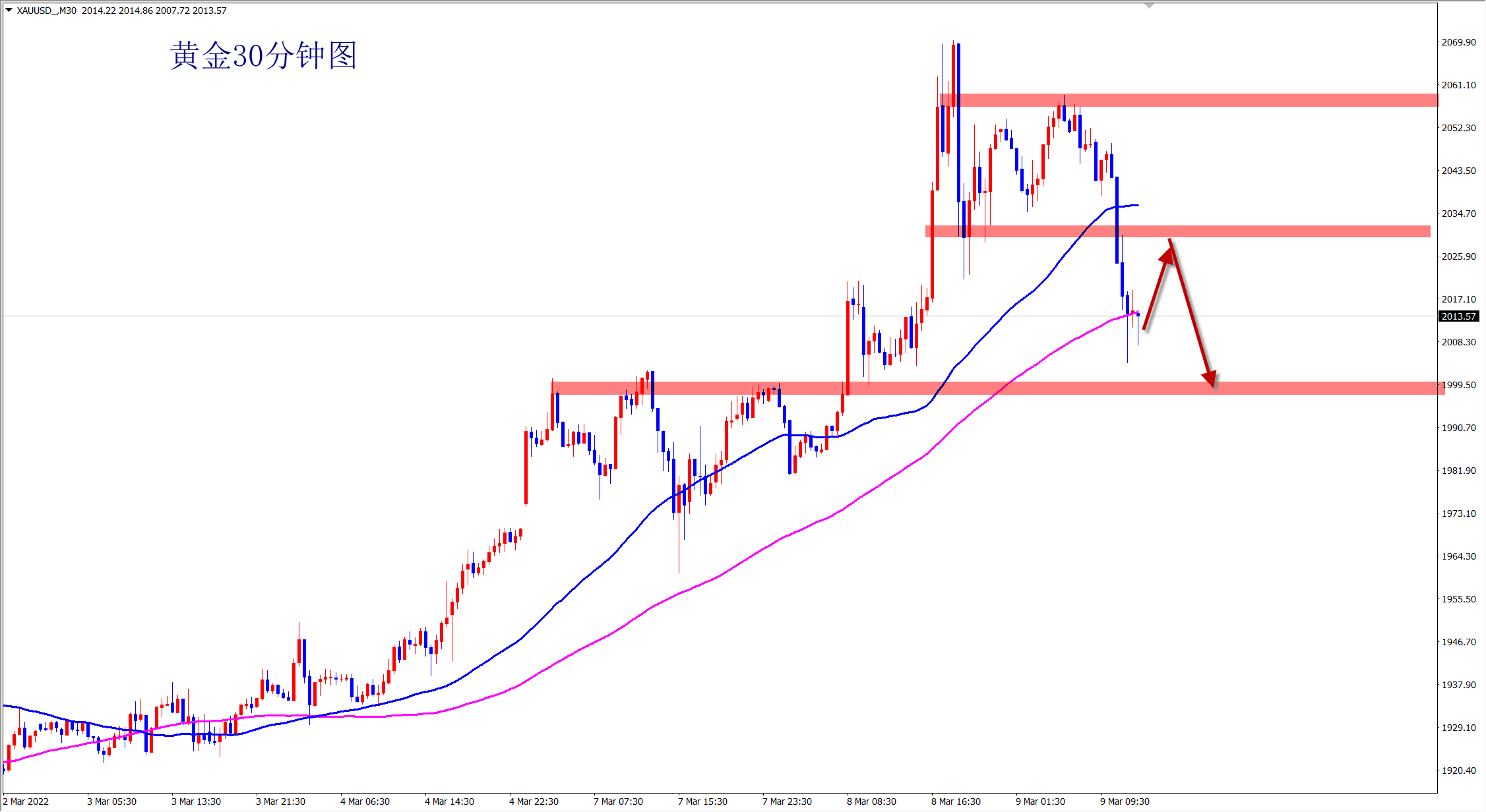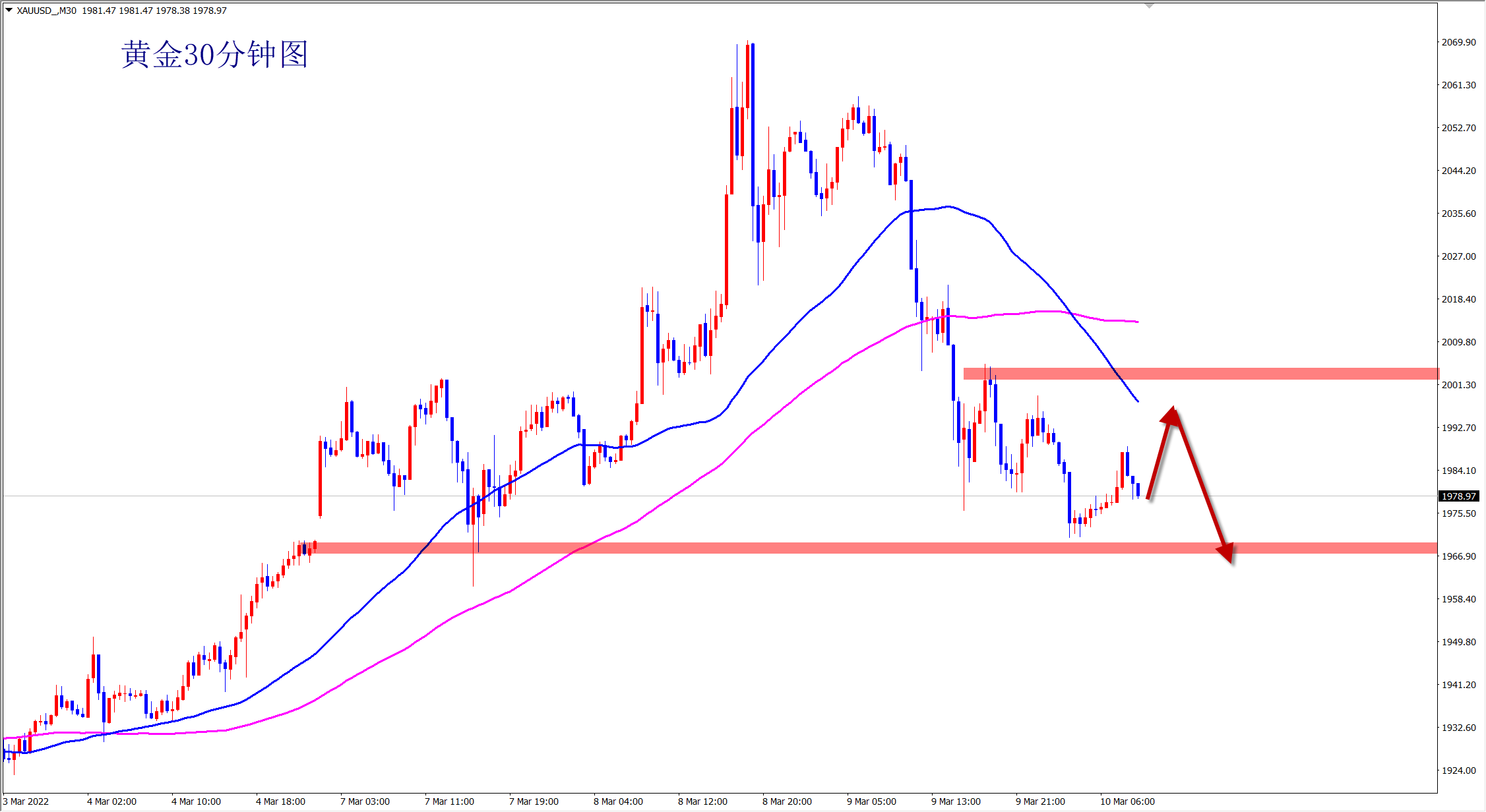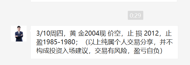 黄金今日整体震荡格局,上方2008压力明显,由于下方未抵达支撑位置,今日我们两单都是干空,分别是1995空如期下跌获利,反弹1990再次干空,又是直接瀑布下跌,收割!日内干空两连胜到手! 消息显示,俄乌谈判出现积极信号,黄金避险情绪消退,直接破位下行!美盘我们将以高空为主,依托2000的压力位置反弹干空,