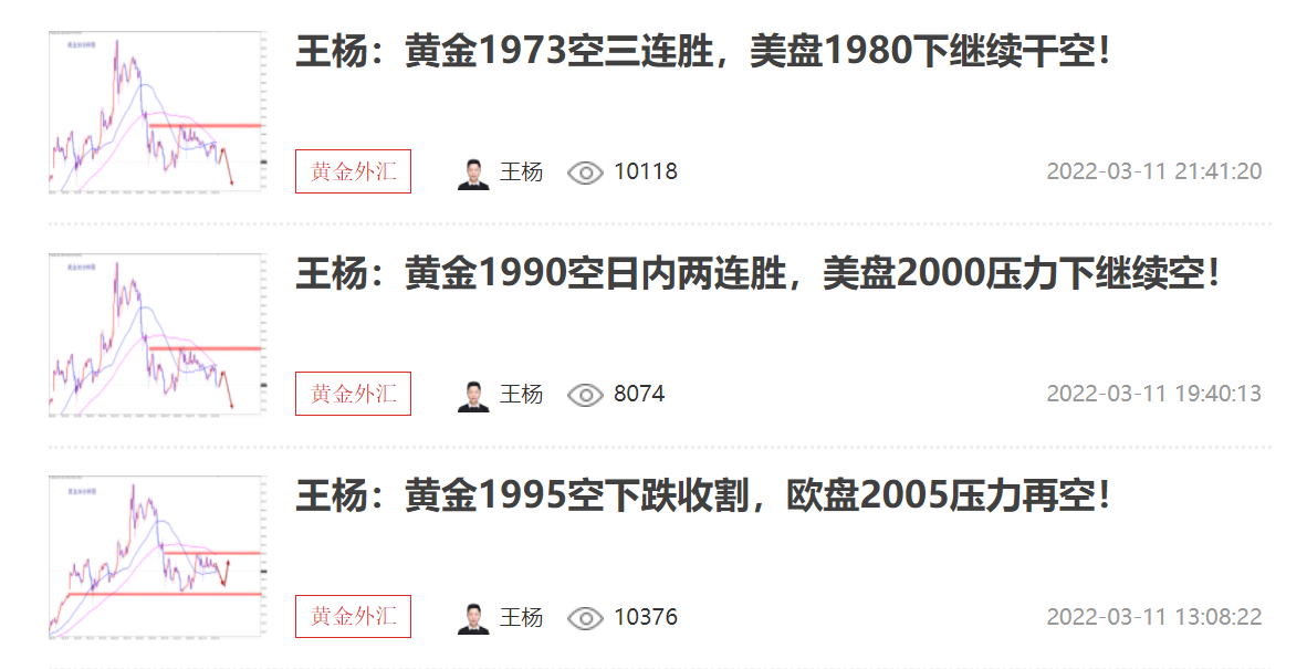 王杨:资深黄金分析师,多年黄金分析及实盘操作经验,曾独掌千万,纵横于市场;对国际基本面、技术盘面解读有独特的思维理念和操作模式,曾对市场巨鳄的思路做过深度的研究;金融市场瞬息万变、灵活变动、运筹帷幄、防微杜渐、如履薄冰以一颗谦卑的心去纵横市场方可百战不殆。