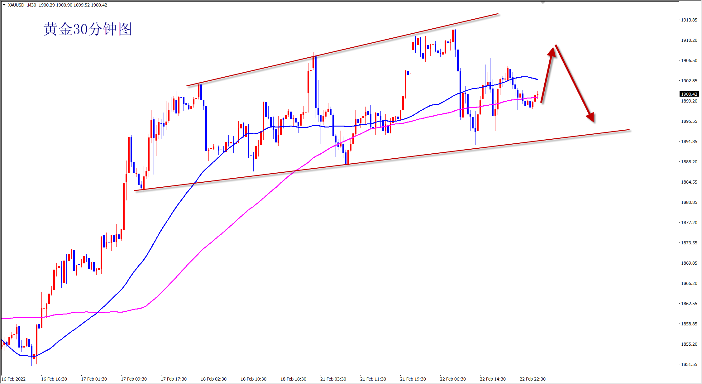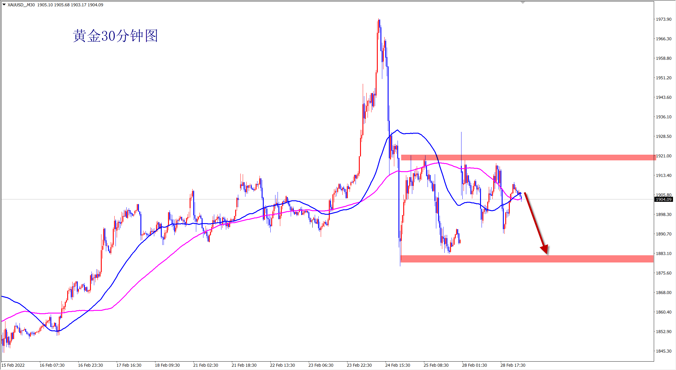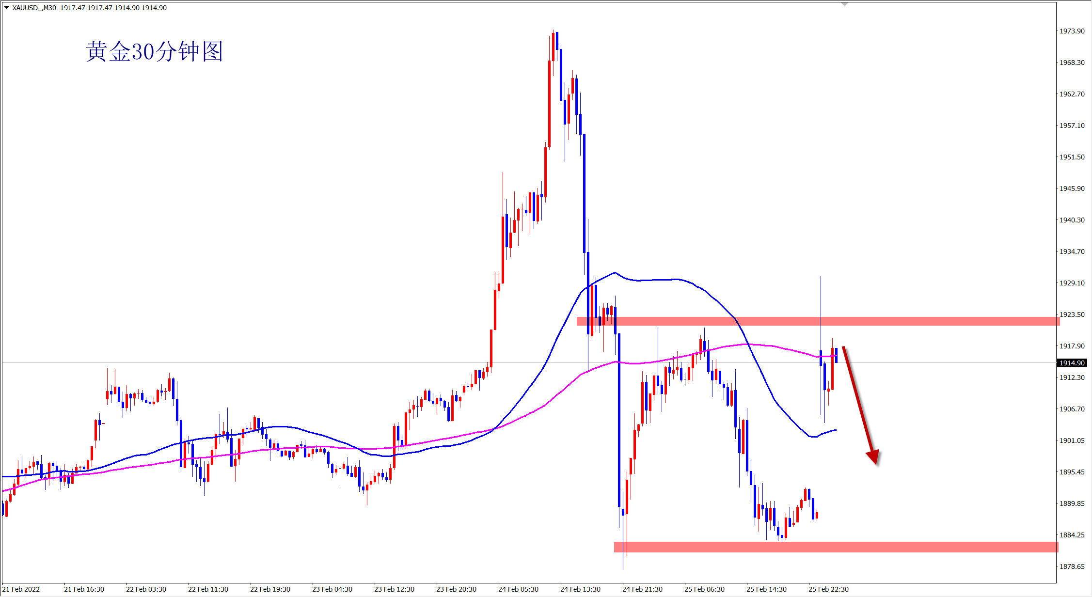 黄金周末消息再次升级,普京宣布进入特殊战备状态,黄金避跳空高开,但是没有突破我们周末所说的1930压力位置,整体还是空头跌势,短线行情将维持1930-1880区间内震荡。黄金早盘依托1930压力先空! 黄金上周我们先多后空,大获全胜!本周精彩继续,续写传奇!当前的黄金大涨大跌,风险与机会并存,个人操盘水平的高低