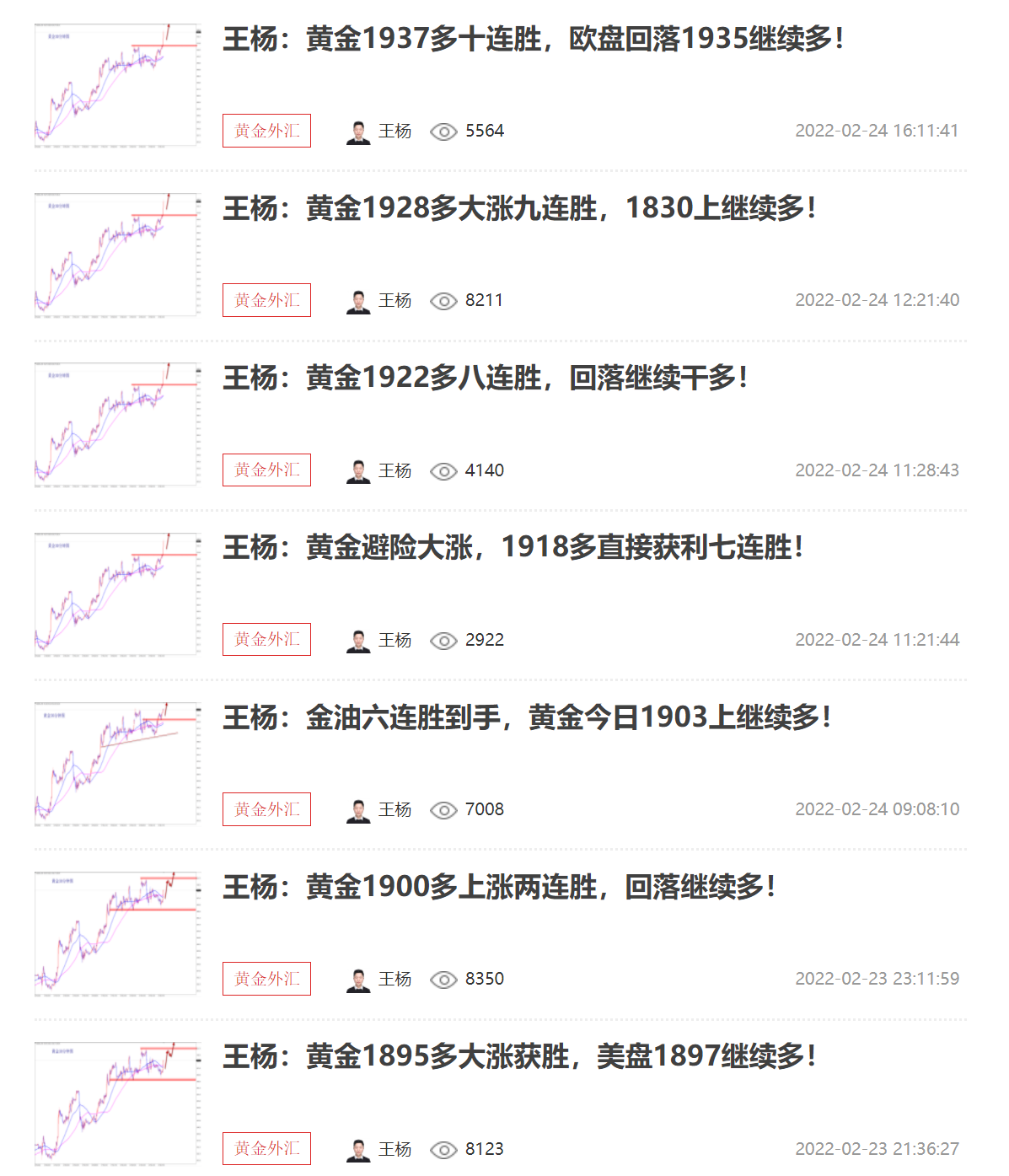 黄金今日大阳拉升突破,再次开启上涨,我们一路干多,当前1937的多单再次大涨获胜,已经实现十连胜,十全十美,给力!趋势仍在,大行情一来,我们就是干!不但要干,而且要干好!跟随王杨的脚步,神话继续! 黄金当前明显的上涨走势,已经无需多言,有眼睛的都看的见!但是能跟上的有几人?趋势为王,点位致胜!
