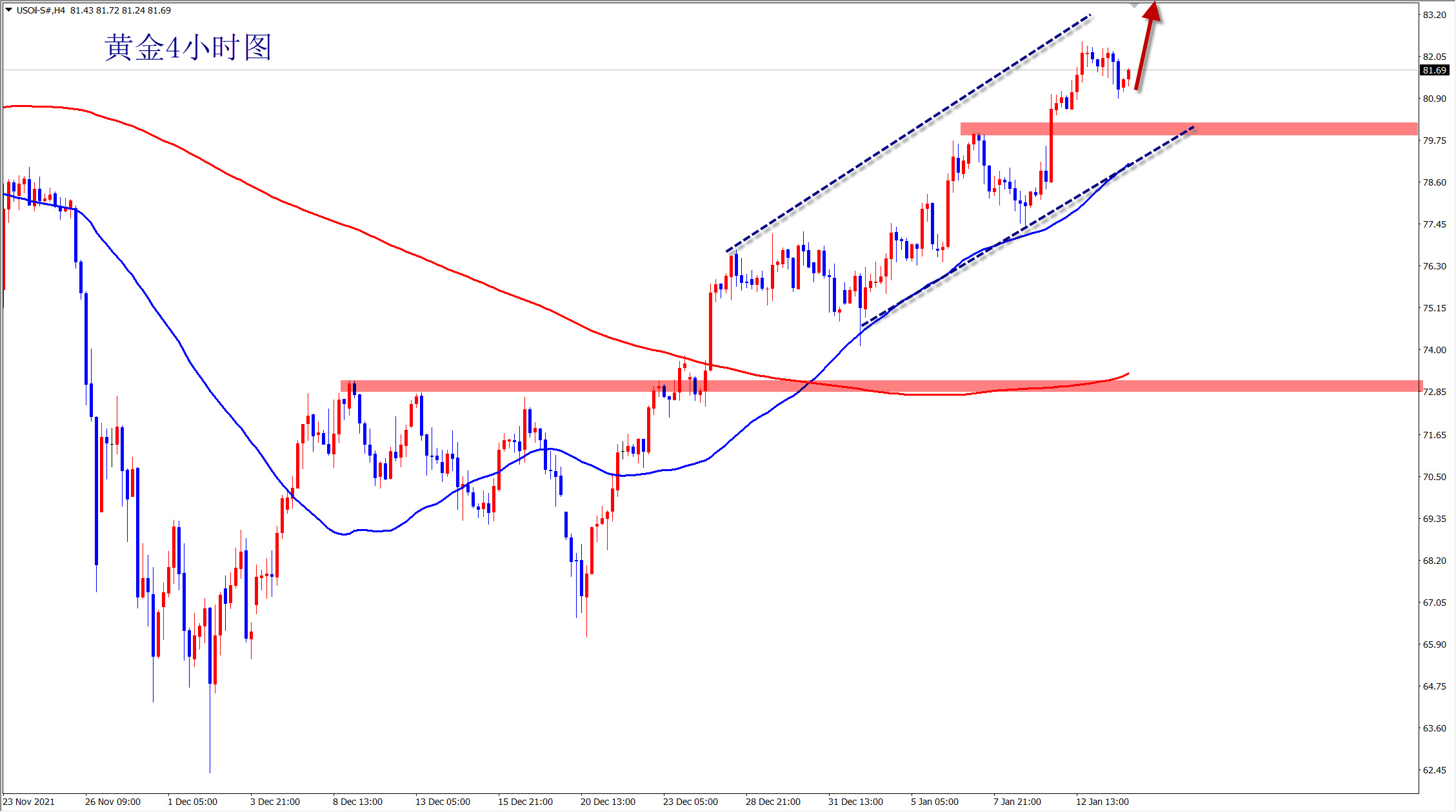 原油当前依旧是趋势上涨走势,日内继续顺势干多,依托81支撑继续干多!顺势轻飘飘,逆势乱糟糟,顺势继续干多! 原油这个品种一定要顺势而为,虽然上涨过程中会有调整会有回调,但是关键的压力位置没有跌破的情况下,还可以继续的干多!当前原油是震荡上行的模式,回踩就是干多的机会,欧盘原油81附近干多! 原油