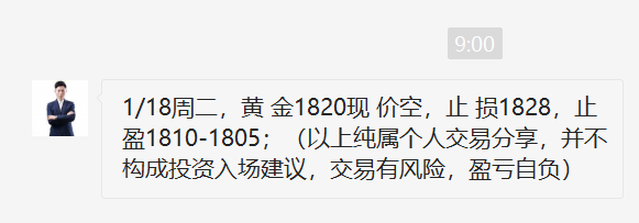 黄金昨日1823位置干空,由于美盘提前休市,行情波动较小,也如期下跌获利!当前行情继续震荡,高位继续看跌,早盘1823位置干空! 黄金上方1832压力位置明显,短线行情震荡,今日我们将依托高位压力继续干空!上方压力分别是1832位置,这是多空分水岭,也是当前震荡区间压力位置!只有突破此压力位置后,行情才能开启