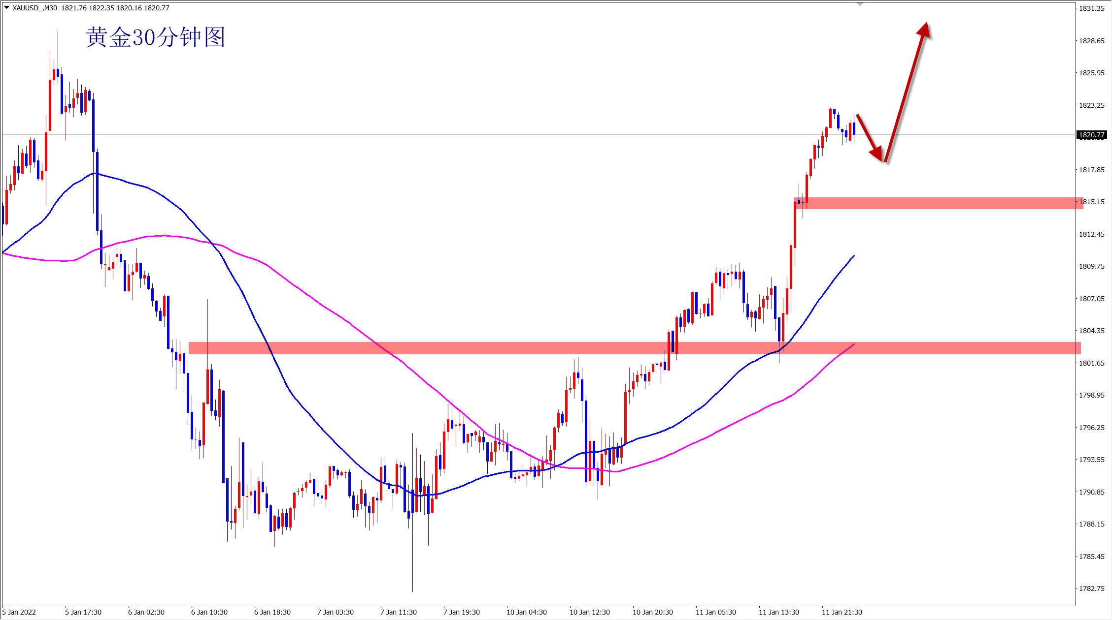 黄金今日震荡回调,但站稳在1815的支撑上方,依旧是多头上涨走势,经过白天的调整,已经蓄势待发,美盘维持亚欧盘看涨思路不变,1815上方就是干多,当前继续持多看涨! 黄金大阳拉升已经指明方向,我们的思路就是跟上市场的节奏,既然行情是涨,回落那就要果断干多!而且当前的走势也符合早盘的预期,维持在1815上方