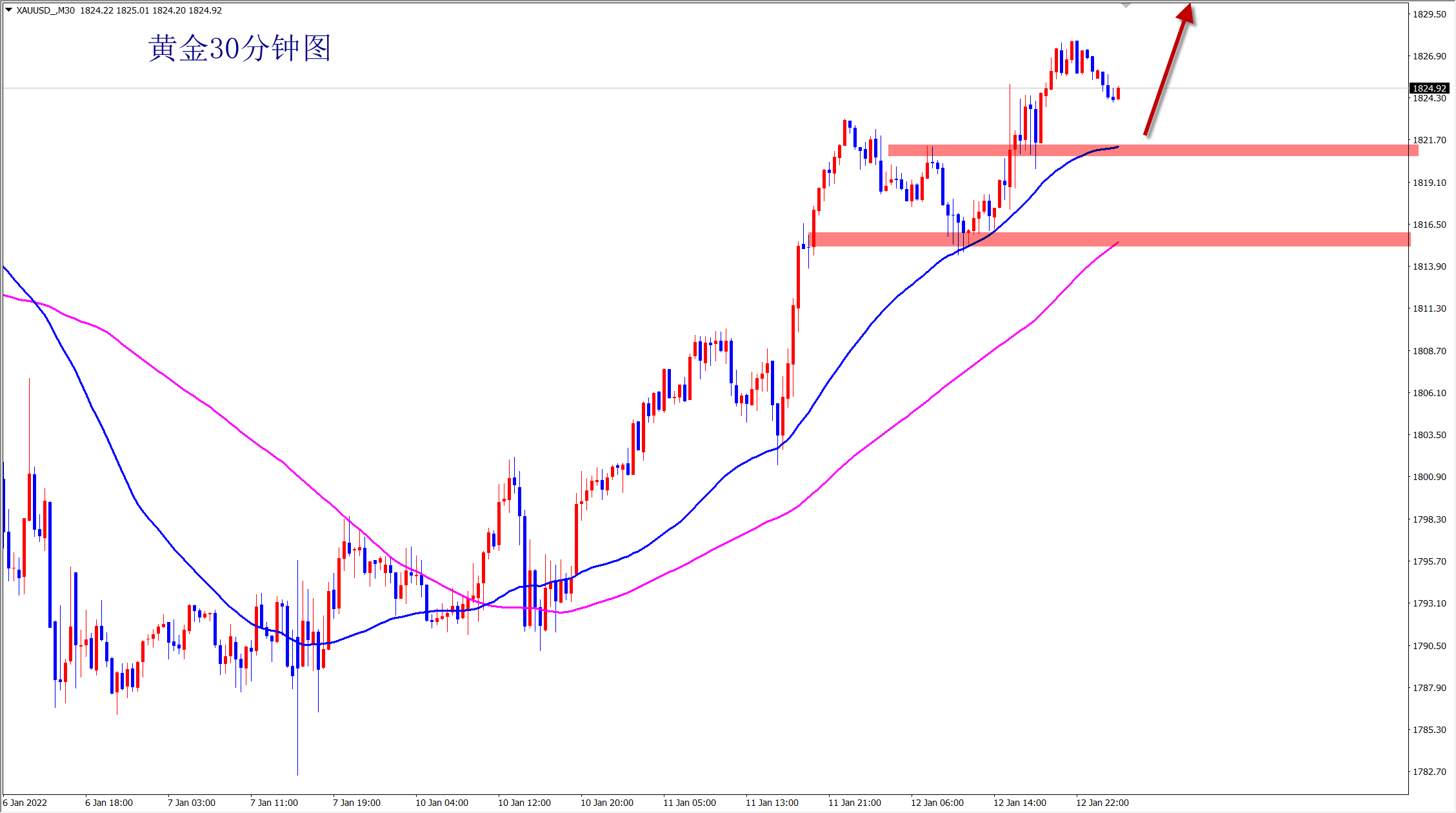 黄金昨日1821多,回落1817补仓多,如期大涨1825一线收割,美盘回落1821再次多,提示设置1828止盈,如期到达目标位置,日内干多三连胜!今日还是继续干多不变,早盘1820支撑继续干多! 黄金当前明显的上涨走势,短线承压1832的前期压力,但是上涨过程中,压力位置都是要被突破的,所以今日支撑位置上方还是继续低