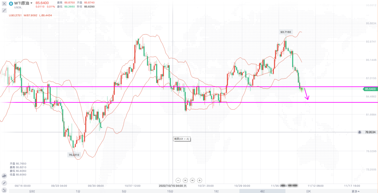 原油:反弹85.8-86附近做空,止损86.5,目标84.5。