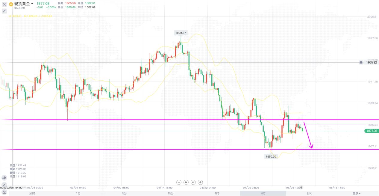 昨日,美元指数再度刷新高点,创2017年1月以来新高至103.28,日线收得五连阳,市场预期美联储将比其他主要央行更加鹰派,美元还受益于全球经济成长忧虑,欧洲正艰难应对俄乌冲突的影响。随着美元飙升,黄金价格刷新近二个月低点至1881美元附近,美元持续走强,市场押注美联储将成功压低通胀,这让黄金感到不安,下行的风
