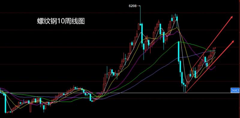 上周螺纹钢10市场延续前一周的拉升过程,周初行情开盘在4838的位置后行情回踩4772的位置后行情强势拉升,周线最高触及到了4999的位置后行情整理,日线最终收线在了4979的位置后行情以一根下影线很长的大阳线收线,而这样的形态收尾后,本周4930多止损4900,目标看4999破位看5025和5050-5075.