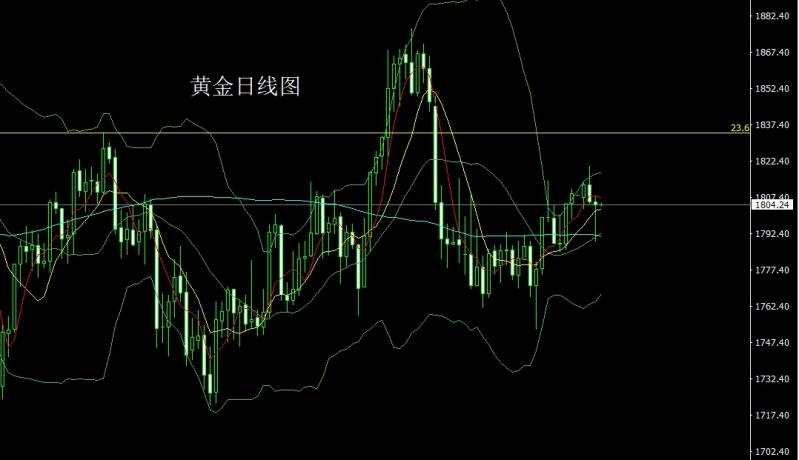 今日上午9:00-11:00本人在中金路演,希望平时关注并支持我的投资者能积极参与,路演地址:htt://roadhow.cnfol.co/how/30617 昨日黄金市场早盘开盘在1801.6的位置后行情小幅拉升给出1809附近后行情回落,美盘开始时段最低给到了1798.3的位置后行情受到日线布林中轨和基本面市场影响行情拉升,日线最高触及到了1816.8