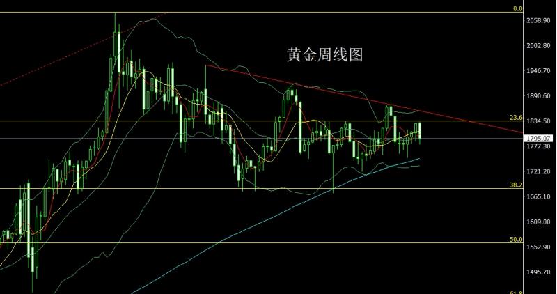上周黄金市场周初开盘在1794.2的位置后行情先回落给出1789.9的位置后行情拉升,周线最高触及到了1829.4的位置后行情尾盘冲高回落,周线最终收线在了1817.2的位置后行情以一根上影线很长的中阳线收线,而这样的形态收尾后,今日的行情延续周五回落过程,点位上,上周五1827.8的的空减仓后止损跟进在1828持有,今日的行情1