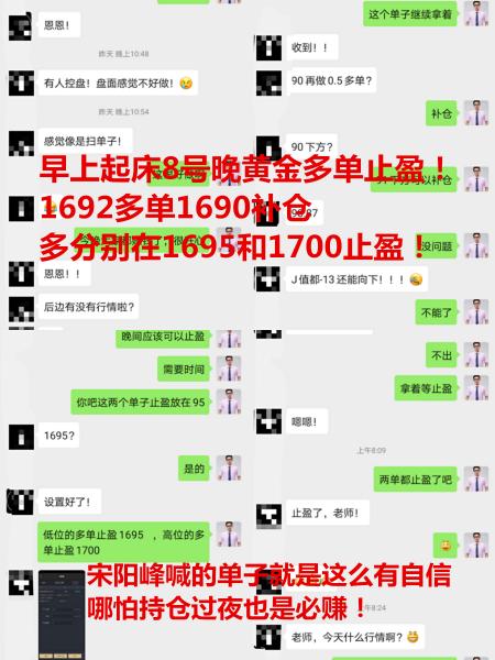 宋阳峰:黄金行情震荡不断就没赚过?每日两单带你走出亏损! 近期的行情,对于很多人无疑来说是种噩梦,有人在抱怨行情不好做,有人在苦恼为什么刚才没有做,明明自己感觉到了会上涨,会下跌,就是不敢操作,所以导致错过了一次又一次的利润,其实行情还是那个行情,操作还是那个操作,选择合适的进场时机和点位,