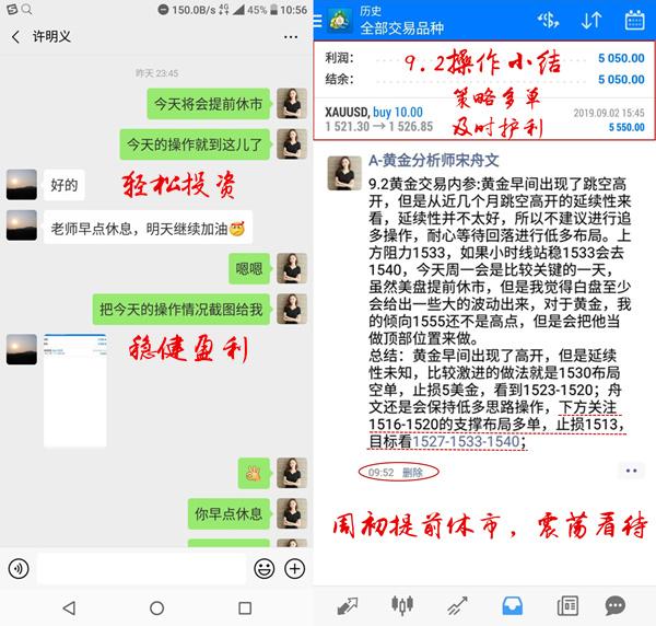 行情不大,大的是人心;波动不小,小的是胆量!舟文每天发布操作策略及现价单,单单精准到位,宋舟文实力有目共睹!舟文每天将策略无偿发布,不图什么,就想给在市场投资的朋友一个方向,操作的时候不至于那么盲目。行情每天都在不断地变化,每给出一单都是经过严谨分析,宋舟文保证的是每个单子都要获利出场,一天两天的获利可以说是运气,那一周呢?一个月呢?