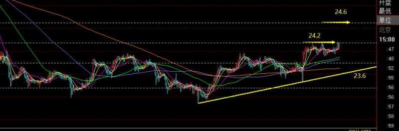 第三,白银方面,指出压力24.15-24.2一线,支撑23.7,区间内震荡符合;