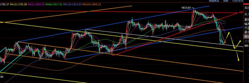 美盘前1808多,1815收割;原本1815收割后,计划压制做空,没给太多时间确认,错失了一波下跌,最低刚好给到指出的1792一线;