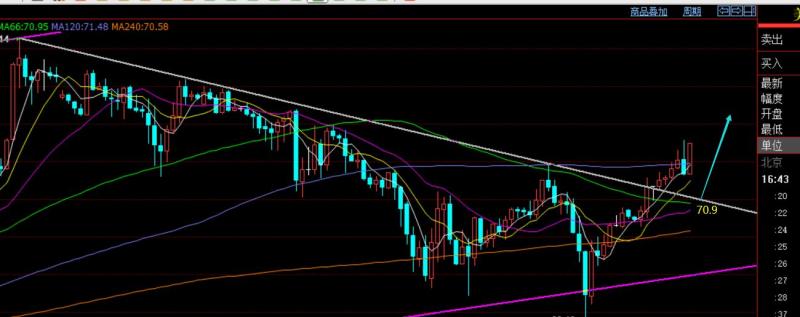 原油方面:早间给出关注71.4压力,若突破,则意味着还有一波拉升,上周72位置判断原油要跌一波,昨晚最低下探69.4一线,也是踩到了通道支撑,而此时白色线已经突破有效,接下来就是回测70.9上逢低短多为主,看72和73,周线给到强压74下出双顶再计划波段空,或提前出信号再做解读;