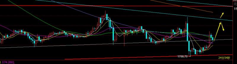 第三,黄金小时线级别, 隔夜冲高打压,今日早盘还是先下探后拉升,循环走法不变,这也是昨晚休息前,给学员强调的一点:半夜破位下跌不急于去参与低多,等到第二日早盘先续跌则是低多时机,早间狙击1773直接多,午后一波急拉1794立刻逢高通知收割;其实,今天的时间拉升和昨日一样,都是14点启动急拉大阳,那么随后回测整理下仍要布局跟多,一方面是依托10均线1780上方逢低继续多,这里不破则逼空上行不变;另一个方面,价格又重新回到了1720-1757所连接的趋势衍生支撑线上,就意味着1786处也存在一定支撑,阻力1794其实细心观察,它是处于昨日跌幅反抽618分割位置,应该还会二次试探它,若突破则会再一次冲击1800及上方,而通道压力有所下移1805一线了,这里或许又是一次短空的好位置,也要看今夜小非农数据以及讲话的刺激表现,若一旦突破1805强攻上行,就说明真正的拉升修正启动了;