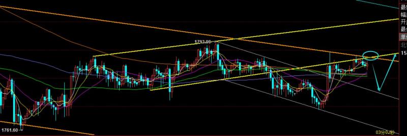 第三,黄金小时线级别,从图中通道可以看出,白色震荡下行通道已走出,转为上行反弹,不过橙色通道上轨以及黄色通道下轨交叉处,存在一定短期阻力,即1787-88下压制,且macd多头动能在逐步的缩减,存在先跌回落的迹象,暂时不适合直接去跟多;下方先留意凌晨起涨点1779-78,其次是1776-74.5区域,也是隔夜涨幅618分割处,这两个位置去狙击短多相对安全些;当然,也存在一种小概率,就是震荡逼空上涨走法,类似1758-1877那一波;大幅拉升一波,通过两三日的高位箱体整理,时间换空间,进一步的推动破高再大幅拉升一波,不过有了前车之鉴,在出现第二次大幅拉升前,一般有一波短暂的急跌诱空,刚好可以把高位整理的支撑给刺破下,那个时候也是低多的好时机,也就是1780及下方了;另外就是,若1790先突破上冲站上了,回测1786-87或可计划提前跟多一次;