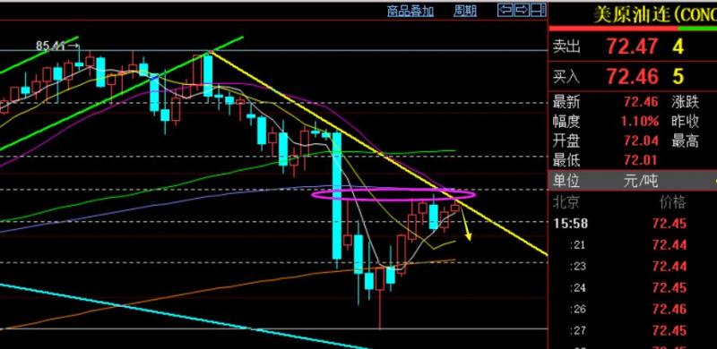 原油方面,从日线图中,可以清楚看出,价格多次上冲73无果而回测,下降趋势通道仍压制有效,短趋势空头维持不变,这轮从底部62.4一线起来的上行作为反弹修正,一旦承压有效,则还会下挫一次,进行二次回补低位; 今日早间开盘先上冲,震荡逼空触及73开始压制,小时线大阴形态出现,意味着小幅反弹可尝试高空了,先回看71.7,破位则指向71,乃至70;