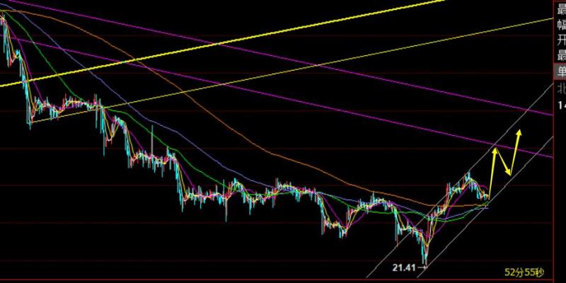 第五,白银方面,图中也是如此,预判维持上行通道内发展,21.4处得到短期双底企稳,支撑也逐步上移21.9-22一线,此位置守住下,看上涨反弹不变,短期阻力22.6,突破站上看23及上方;