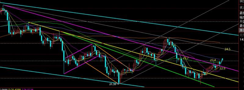 第二,白银方面,同样的,上周五也未给到预期22.9逢低继续进多点,依托23支撑拉升至23.4高位;