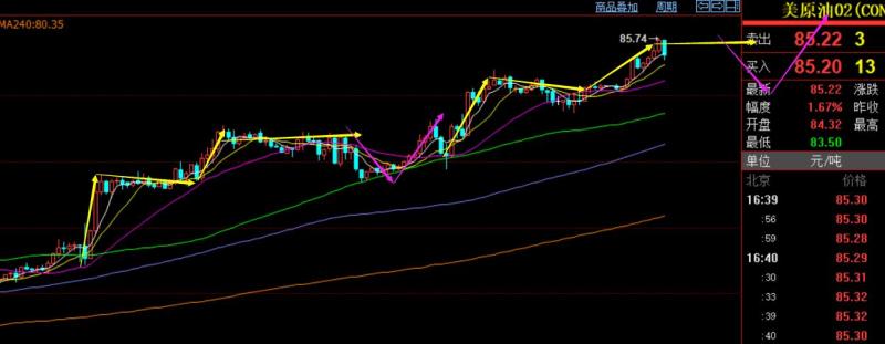 原油方面:日线级别依托短期均线强势一路上攻,出小阴修正后,就是大阳的出现,走势较为强势,切勿轻易做空,顺势干多为主;昨日依托凌晨低点83.7做多,今日早盘顺利到位84.7拿下百点收割,而离场后,价格直接延续拉升,小时线饱满大阳出现,且直接站稳隔夜高点,因此回测顶底位置84.75,也即是隔夜多单止盈的位置仍继续多,拉升85.7,又刚好百点左右收割;此时不急于再多,缓一缓时间,因为2小时处于双背驰中,有可能会出现回调,当亚盘大幅持续涨后,欧盘可能作为回调时间,美盘再企稳拉升;短线上维持84上下逢低看涨为主即可,等美盘再狙击多;