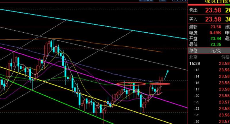 第二,白银方面,昨日白盘波幅区间很小,支撑22.8,阻力23,看着黄金日内弱,想多观察下22.8一线支撑如何,保守是计划22.6上低多,结果美盘直接秒拉至23.4上方,思路近期都是看涨为主;