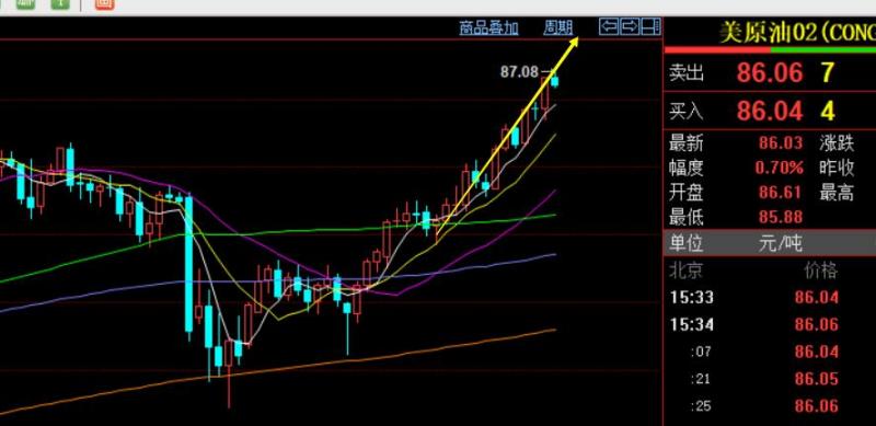 原油操作上:85.8上逢低继续多,防守85.4下方,目标87-87.5; 依然是02合约报价;