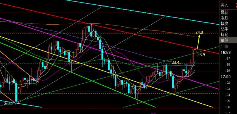 第二,白银方面,周三依托22.8直接快速急拉大涨后,就走了短期小单边极强模式,给不到预期做多点,昨日计划23.2低多,价格未触及;而对于纸白银的学员来讲,一直以来都是波段中长期为主,长期一直强调看好多头,拿着底部低位多单即可,逢高适当减仓后,若后市能出现调整回落,则是继续补多时机;作为杠杆白银操作的学员来讲,就以短线为主,需要卡一个相对好的位置,宁可错过踏空,也不能太盲目过急,毕竟它的盈亏比是相对黄金刺激的;