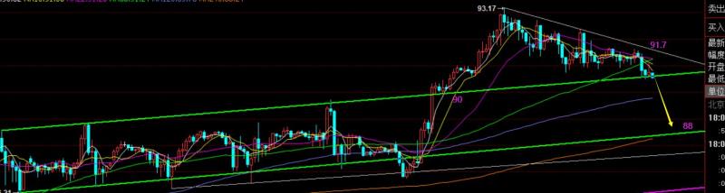 原油方面,日线昨日收报顶部十字K,93暂时承压有效,今日关注十字K低点90.6,有效破位下行,则代表有延续下跌动能,短期支撑是90,一旦破位,有望指向88-86,再一次回到上周的反复区间内;86一线可以作为短期多头的命脉点,破位这里,短期则转空,那样周线级别就可以逐步指向76.5波段目标点,甚至通道下轨更远处;从小时线当前来看,价格逐步走低,保持短线看跌回落,暂时以91.7作为压力点,逢高继续空,或者作为防守点,等待扩大跌幅后,反弹继续跟空即可;持有93下波段空单, 小波段目标看88-86,大波段目标看76.5; 后面有可能还会出现高位的反复情况,一下子要干脆打压到底很难,但起码93是目前较好的持空位;