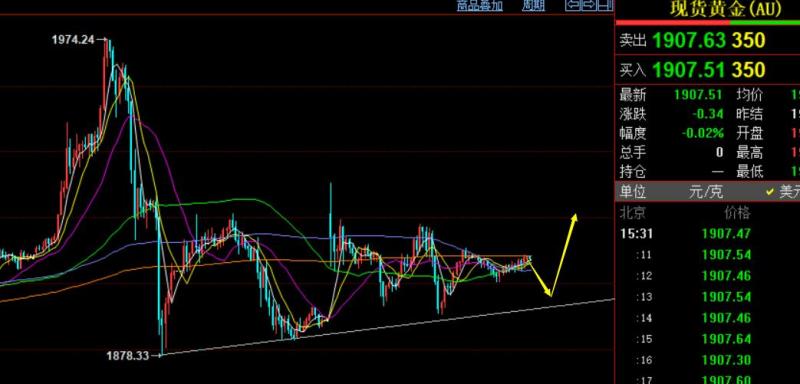 今日图示简单分析:日线10均线1895上维持拉低多为主,1940迟早应该会试探,耐心等待即可,而防守则是1890下方,或1880一线作为偏强多头的命脉点,要二次走高,这里是不应该会被下破的;当前支撑1901-02、1897-95、1885-86强支撑,都是触及企稳做多点,阻力1911、1918-20、1930、1940是压制短空点,维持区间内还会继续反复运行,卡两边参与,想要利润大些,风险小些,防守小些,则尽量靠边缘阻力或支撑去参与多空,近期趋势是多头,因此拉低多为主;